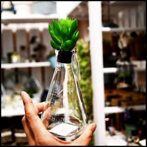 ビンは、置くだけで涼しげに、おしゃれになるのがすごいところ。特に今年はビーカーや試験管がきてます!